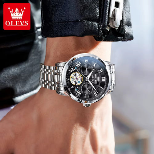 Flywheel Skeleton Automatic Watch for Men Luminous Starry Sky Waterproof Business Wristwatch Mechanical Watch